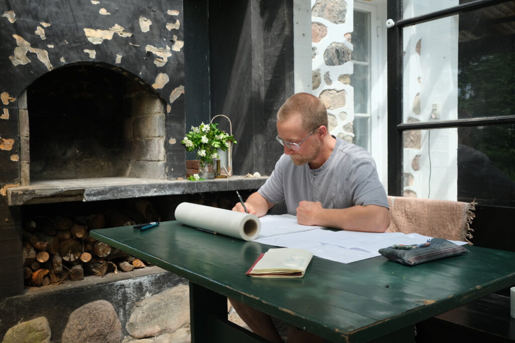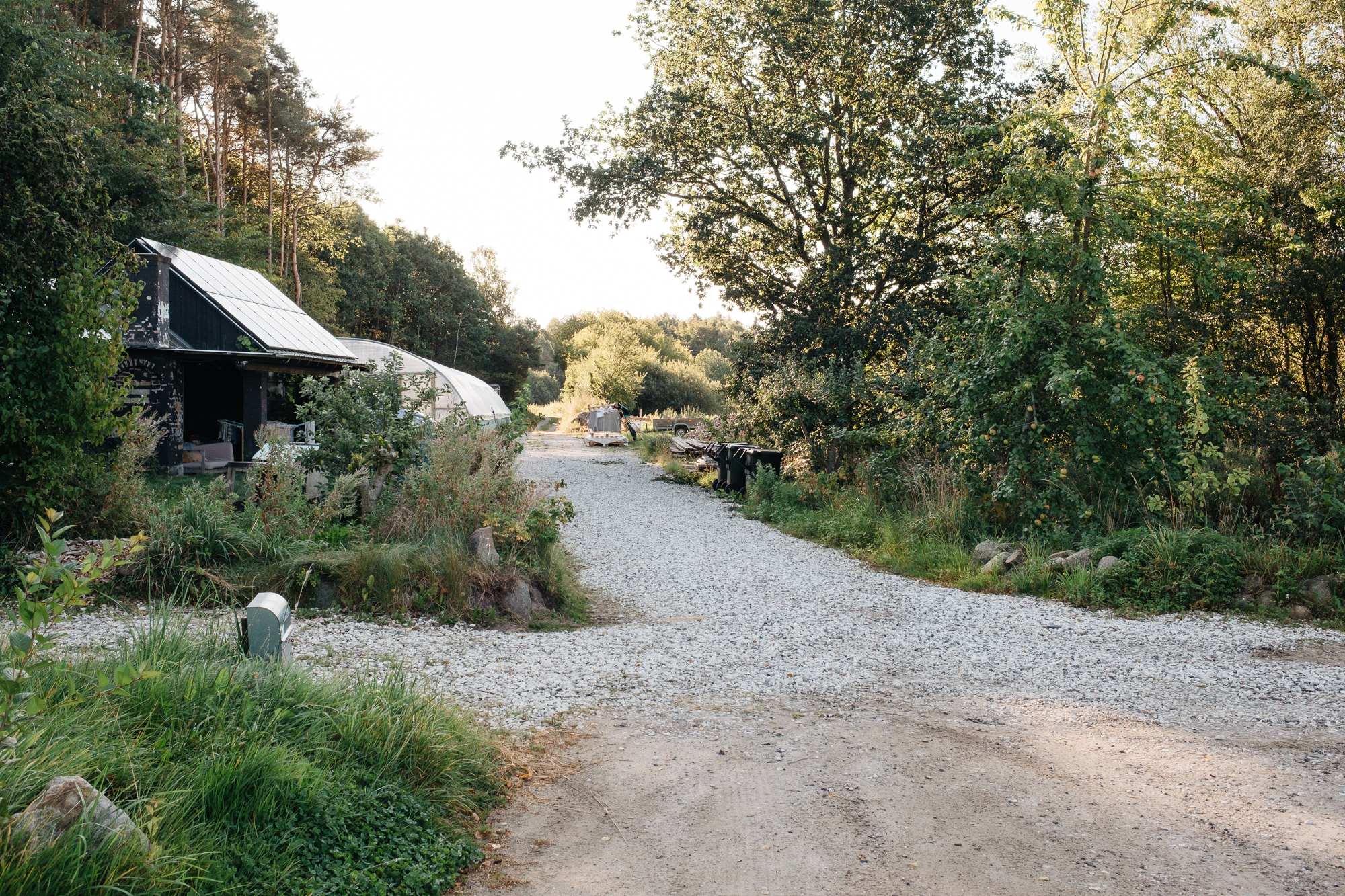 Grusvejen tager os endnu et stykke videre. Nu toner et drivhus frem, og som vi kommer nærmere, ser vi endnu ét overfor en tætsået køkkenhave i lige rækker af alverdens nuancer af grøn og andre farver. Vi parkerer og træder ud i et sted der tydeligt bærer præg af produktion, men naturen lurer stadig i alle sprækker og det omgivende landskab drager konstant blikket udad. Her summer af liv men ånder fred og ro. I køkkenhaven er én i gang med at høste salat, en anden radiser, mens en tredje sætter spæde planter ud. En ATV kommer glidende ude fra engen med for og bag læsset med kasser fyldt med æg.